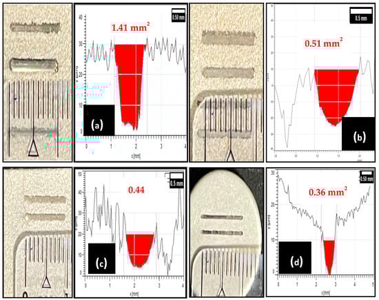 | Sample/Coating Condition | Wear Track Profile Area (mm2) | Length of Sliding Stroke (mm) | Calculated Lost Wear Volume (mm3) |
