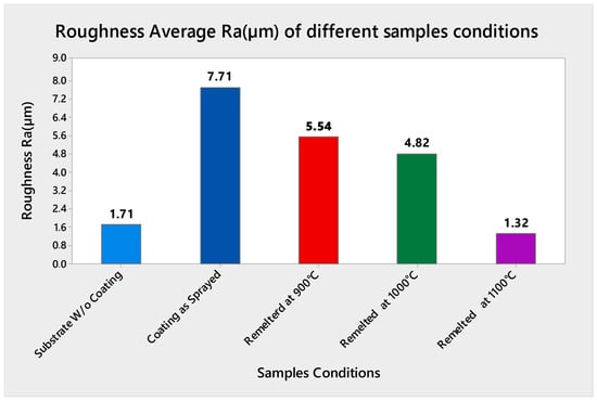 - In general, thermal spraying worsens roughness; however, after remelting at 1100 °C, the roughness of this coating is 30% better than the roughness of the substrate and 5.8 times lower than the as-sprayed coating.