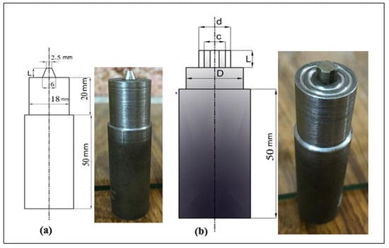 (a) Normal tool design (L = length of pin tool (less than the thickness of material to be welded (0.1, 0.2, 0.3 mm). (b) New tool design.