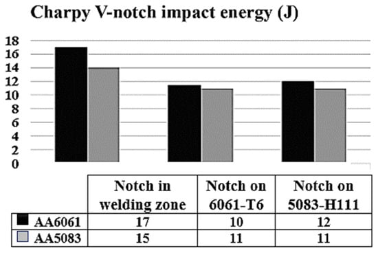 Results of the 6061-T6 with the 5083-H111 aluminum alloy using the Charpy V-notch test.
