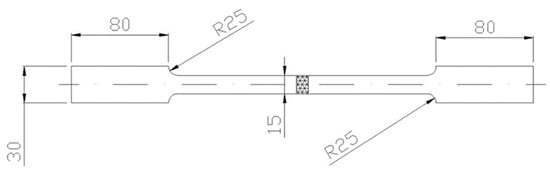 During the modeling process, based on the experimental welding results, the misalignment and the reinforcement of the root pass were measured for finite element modeling. The geometry of the fatigue specimens was as shown in Figure 2. The mechanical properties that were used in the modeling are listed in Table 2. The mechanical properties for the weld joints and base materials were the same in the modeling. The test stress level of the specimen was determined by the stress level of the full-size specimen specified in DEP 37.81.40.31-Gen [] and the maximum tensile residual stress obtained from the weld metal zone and the heat affected zone.