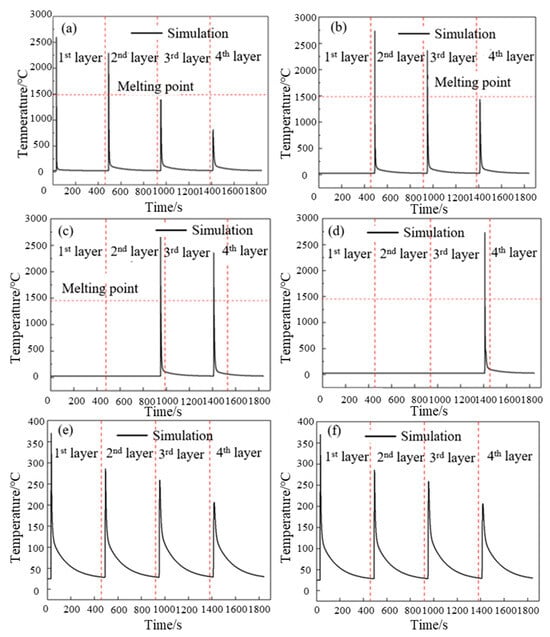 (a–f) Thermal cycle curves at points A, B, C, D, in the deposit, and points S1 and S0 in the substrate.