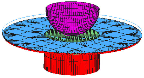 On a THP-500T isothermal forging press (Genertec Tianduan, Tianjin, China), an experimental platform for hot stamping was independently set up, including a set of hot stamping dies according to the Nakazima bulging test standard, as well as displacement and force-measurement systems, as shown in Figure 4. The material of the hot stamping die was H13 steel. The hot stamping process parameters referred to the numerical simulation analysis results. Combined with the time–temperature transformation (TTT) curve of 22MnB5 provided by scholars [25], the steel that achieves austenitizing above 900 °C has better formability. The mold was first heated to 650 °C, and then the plate was heated to 930 °C by the resistance furnace, and the heat was maintained for 5 to 10 min. When the plate temperature was 700 °C, the plate was quickly transferred to the mold, and the experiment was carried out on the THP-500T isothermal forging press.