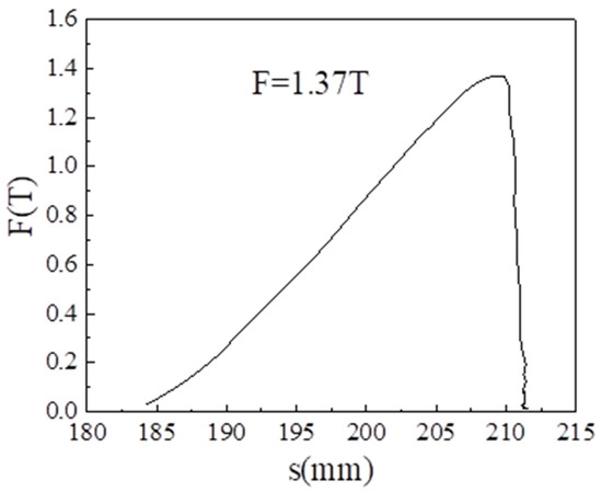 Figure 2 shows the punch force–time curve corresponding to the samples taken from 22MnB5 steel plates with widths of 20 mm (Figure 2a), 80 mm (Figure 2b), 100 mm (Figure 2c), and 180 mm (Figure 2d). Through the cup bulging simulation of 22MnB5 steel with different plate widths, it was found that the maximum punch force criterion was only applicable to the small 22MnB5 steel width (20~80 mm). When the 22MnB5 steel width was relatively large (100~180 mm), the specimen would show a double tension state, and the punch force would increase with the growth of displacement without peak value.