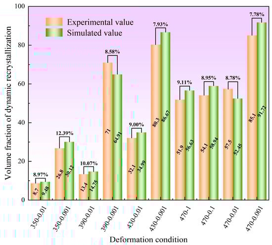 Comparison of dynamic recrystallization volume fractions under various deformation conditions.