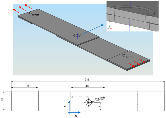 As in the previous case, the specimen is subjected to simple tensile loading.