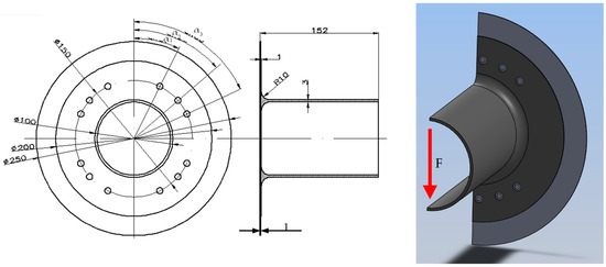Referring to Figure 16, the three weld points, each with a diameter of 5 mm located in the first quadrant, are transferred along a fixed circumference with a diameter of 150 mm. Parameters αi are varied, while the external load F at the extremity is kept constant.