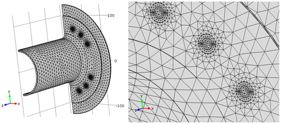The structures reported in Figure 16 and Figure 17 show the cases of a T-joint obtained by spot-welding; the weld points are positioned at the same distance from the axis of the tube (tube perpendicular to a sheet metal disc).