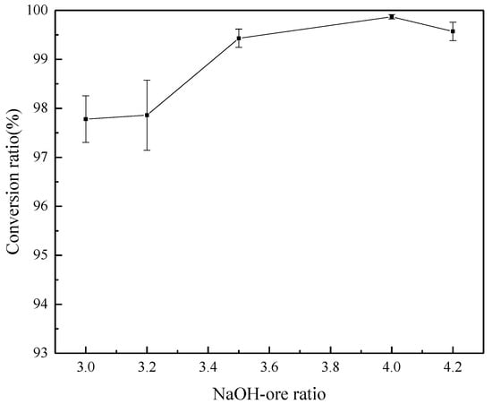 Effect of NaOH–ore ratio on the conversion rate of ZrSiO4.