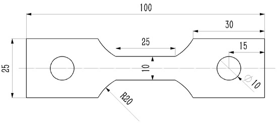 The schematic diagram of the tensile test sample is provided in Figure 2.