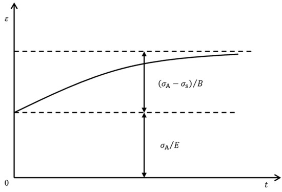 This is the equation of strain variation with time described by the Bingham model at a certain stress level. After the instantaneous elastic deformation, the strain increases exponentially and reaches a stable value, as shown in Figure 8.
