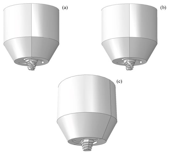 Based on the above analysis, the hook defects are caused by the threaded structure on the probe, which promotes material migration in the thickness direction. Therefore, by changing the direction of the threads and grooves on the probe or reducing the amount of threaded structure, the migration of plastic metal in the thickness direction can be minimized, thus decreasing the size of the hook defects. The probe that only changes the direction of the grooves is called a right–left probe (RLP), while a probe that changes the direction of both the threads and grooves is called a left–left probe (LLP), and one that adds a three-plane structure is called a three-plane probe (TPP). The morphology of the three probes is shown in Figure 8.