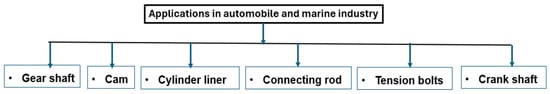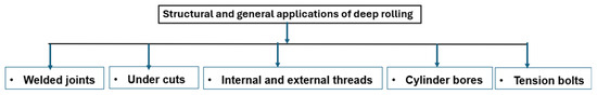 DR is most often used in industrial applications for those workpieces requiring enhanced properties paired with uncomplicated procedures at affordable costs. Specific applications involve (Figure 4) welded joints of structures, tubes, and pressure vessels, undercuts or stress-raising zones of parts, threaded parts, tension bolts, high-strength fasteners, torsion bars, gear tooth, cylinder bores, roller and thrust bearing race, heat exchanger tubes, and blanking punch fillets [24].