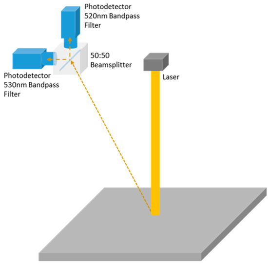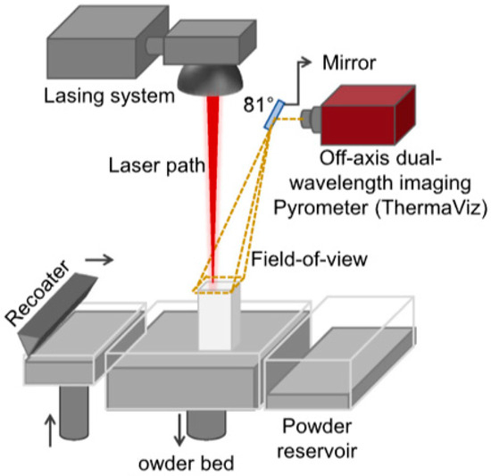 Schematic representation of the off-axis dual wavelength imaging pyrometer setup. Reprinted with permission from ref. [80], 2020, Elsevier Ltd.