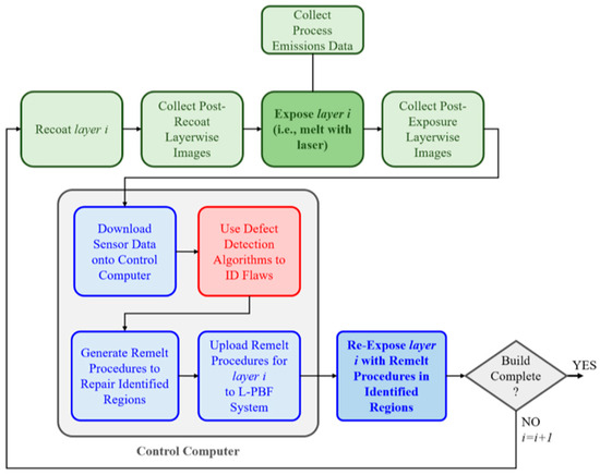 - Snow, Z.; Diehl, B.; Reutzel, E.W.; Nassar, A. Toward In-Situ Flaw Detection in Laser Powder Bed Fusion Additive Manufacturing through Layerwise Imagery and Machine Learning. J. Manuf. Syst. 2021, 59, 12–26. [Google Scholar] [CrossRef]