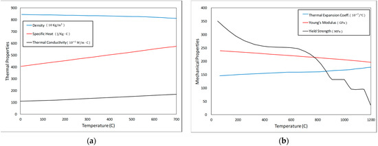 Temperature-dependent material properties of Inconel 718: (a) thermal properties; (b) mechanical properties (Adapted from Ref. [44]).