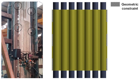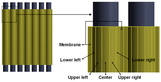 Figure 14 shows the geometric constraint of the structure used to perform the structural analysis after the heat transfer analysis. To implement the actual constraints, a portion of the leftmost and rightmost membranes are constrained.