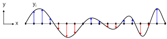 To quantify the weld deformation of the structure for each sequence, the sum of the deformation deviations in the y-direction at the nodes of the overlay-welded plane was calculated as shown in Figure 17. If these values are added as they are, the positive and negative values cancel each other out. So, the squared values are added, and the deviation is defined by Equation (3).