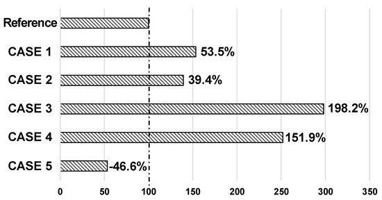 The results of analyzing the overlay welding deformation using this method are shown in Figure 18. These results quantify the values in CASES 1–5 when the Reference is set to 100%.