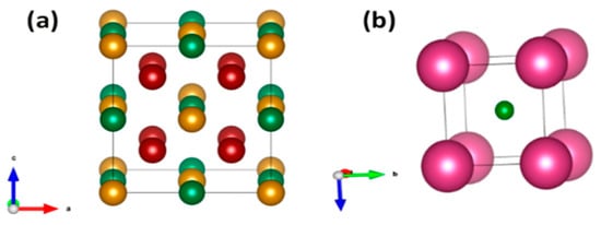 Quaternary Heusler alloys are a type of Heusler alloys exemplified by an LiMgPdSn-type crystal structure (known as Y-type structure), whose primitive cell contains four atoms. Likewise, these types of alloys follow the same symmetry as half and inverse Heusler with an F43m space group []. Depending on the atom positions, three nonequivalent structures are obtained for the Y-type arrangement. Table 2 presents three different atom arrangements, mentioned as type 1, type 2 and type 3 at various Wyckoff positions []. The chemical formula XX′YZ is demonstrated in the quaternary Heusler compounds due to the stability along the FCC cube’s diagonal. Rather than being formed by a single element, X and X′ are formed by distinct chemical elements. The valence of the elements in these types of alloys is another characteristic; X atoms have a higher valence than X′, while Y atoms have a lower valence than both X and X′ elements []. Three-unit cell structures with the possible arrangement sites of the quaternary Heusler are represented in Figure 6 [].