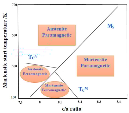 Moreover, it is conceivable to design an alloy with the adequate temperature range by selecting chemical (and e/a) parameters. However, the e/a ratio is not the only factor that can affect the functional qualities. There are other parameters linked to the functional response, such as magnetic interactions between atoms, the concurrence of the structural and Curie ferromagnetic transformation and so on.