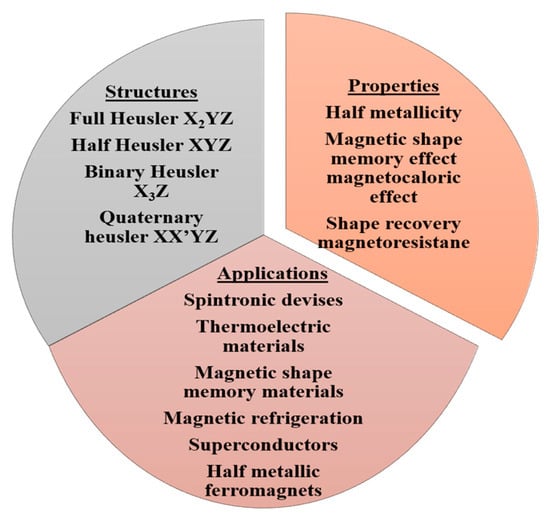 Full-Heusler, half-Heusler and inverse-Heusler alloys are the three categories for ternary Heusler alloys. Furthermore, binary and quaternary compounds are formed from Heusler alloys as a result of structural changes and chemical substitutions.