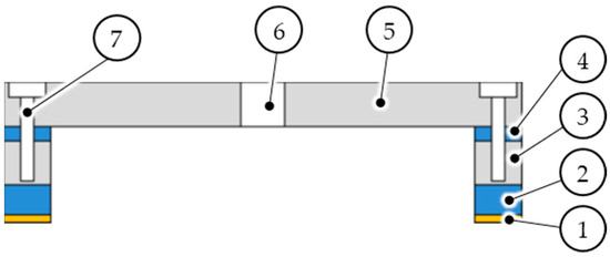 In order to determine the necessary width of the contour seal, the manufacturer of the vacuum cups is consulted and the effective suction area is estimated from the preliminary investigations. This is for estimation purposes only and assumes the same vacuum distribution in the non-contact area. It only applies to the present case. Suction pads have a contact and a non-contact area (see also [13]). This means that even flexible suction pads only have contact with the workpiece to be handled in the outer area. The smallest non-contact area and its diameter are thus calculated for the most conservative case from the measured pressures and holding forces of the suction pad in the preliminary test. At room temperature, a minimum holding force of 228.3 N was achieved with a 72.6% vacuum. This corresponds to an area of 3144.6 mm2 with an effective diameter of 63.3 mm. The effective sealing width is, therefore, 13.4 mm. This is in line with the manufacturer’s statement that a sealing width of at least 15 mm should be taken into account. For the development of the segmented vacuum mask, the contour seal is set at 15 mm, so that a safety factor of approx. 12% is taken into account in the design.