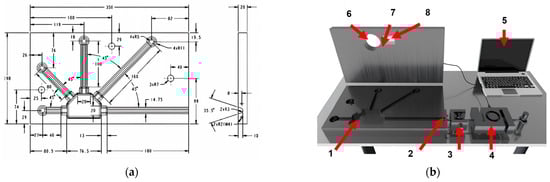 (a) Scheme of the mold; and (b) measuring device: 1—mold, 2—anchoring screw, 3—gripping mechanism, 4—load cell, 5—data processing, 6—inlet, 7—thermocouple, 8—refractory glass.