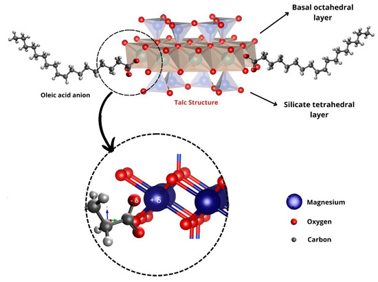 Schematic representation of the interaction between Mg present in the basal layer of talc and O- present in the oleate ion of m-2HEAOL.