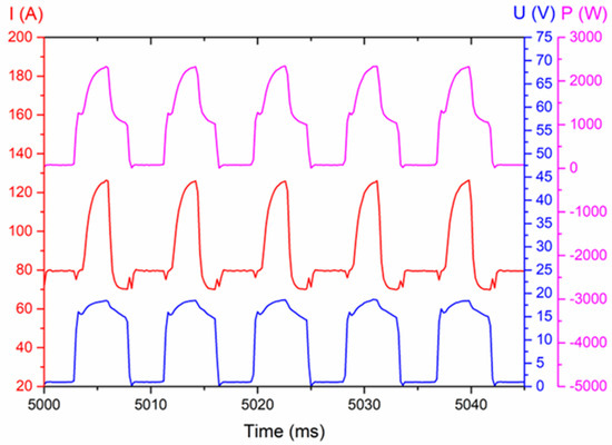 A sample of 5 power cycles typical of Al alloy depositions with CMT-WAAM (1.2-mm AWS ER5356 wire, Ar5.0, wire feed speed = 4.7 m/min and deposition speed = 35 cm/min).