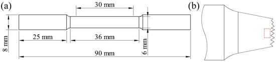 Schematic illustrations of (a) high-temperature tension test specimens and (b) microstructure observation in the fractured specimens (red dotted box).