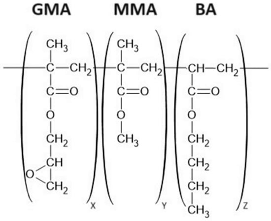 Structure of acrylic resin (GMA—glycidyl methacrylate, MMA—methyl methacrylate, and BA—n-butyl acrylate).