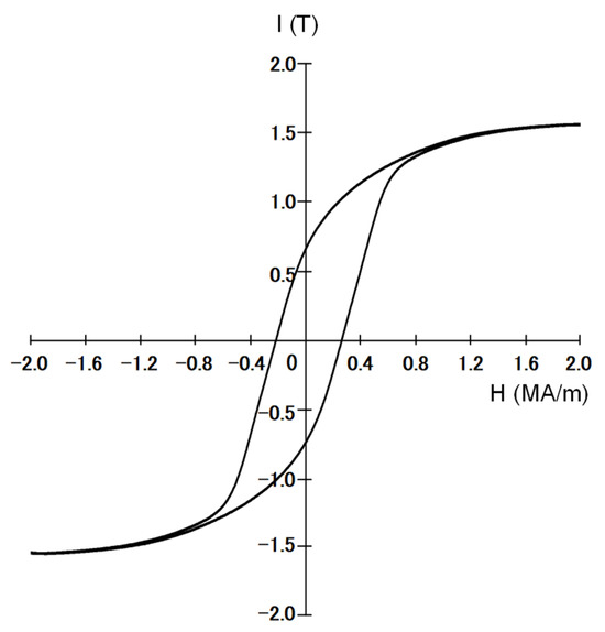 New rare-earth-free iron-based magnets, such as those with L10-FeNi and α″-Fe16N2 phases, are considered prospective alternatives to high-performance Nd-Fe-B magnets [4,5]. The superiority of Nd-Fe-B magnets arises from the Nd2Fe14B phase, which has a large saturation magnetization, a high anisotropy constant, and a high Curie temperature [6]. Table 1 shows the intrinsic magnetic properties of the Nd2Fe14B, L10-FeNi, and α″-Fe16N2 phases.
