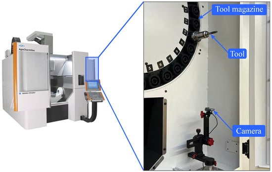 Vision system for automatically capturing tooling system dimensions, installed inside the machine’s tool magazine.