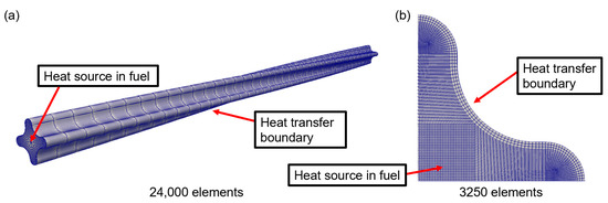 Mesh grids for (a) the whole helical cruciform fuel rod and (b) a 1/4 section of a slice.
