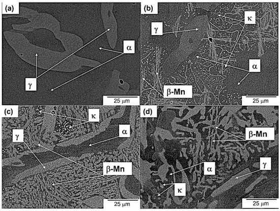 APA StyleLopez-Hirata, V. M., Perez-Badillo, E., Saucedo-Muñoz, M. L., Hernandez-Santiago, F., & Villegas-Cardenas, J. D. (2024). Phase Transformations after Heat Treating an As-Cast Fe-30Mn-8.8Al-0.3Si-0.15C Steel. Metals, 14(7), 748. https://doi.org/10.3390/met14070748