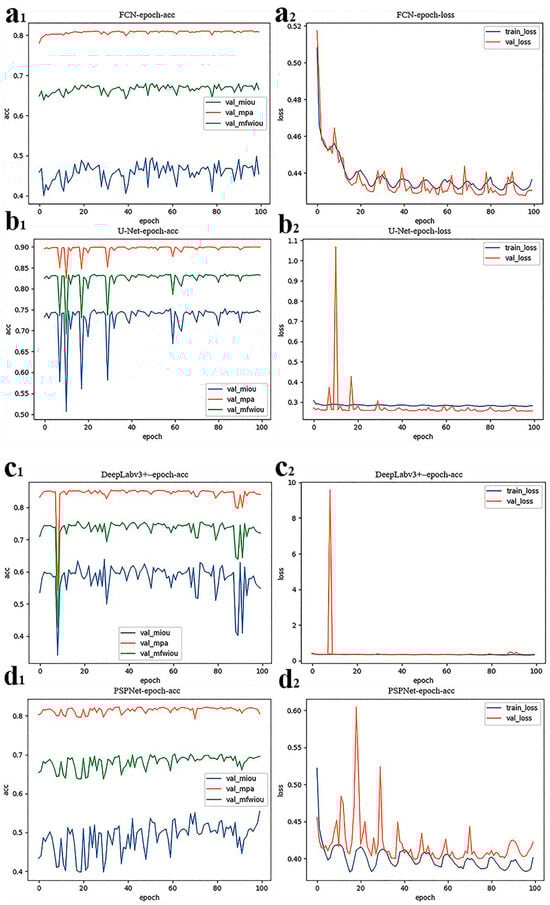 - Five neural network models based on deep learning—an FCN, U-Net, DeepLabv3+, PSPNet, and ICNet—were trained on the self-built 23CrNi3Mo steel carburized layer microstructure dataset (MCLD). The experimental results show that the U-Net model has the best segmentation effect on the microstructure of the carburized layer, with three evaluation indicators: MIOU of 0.75, MPA of 0.89, and MFWIOU of 0.83.