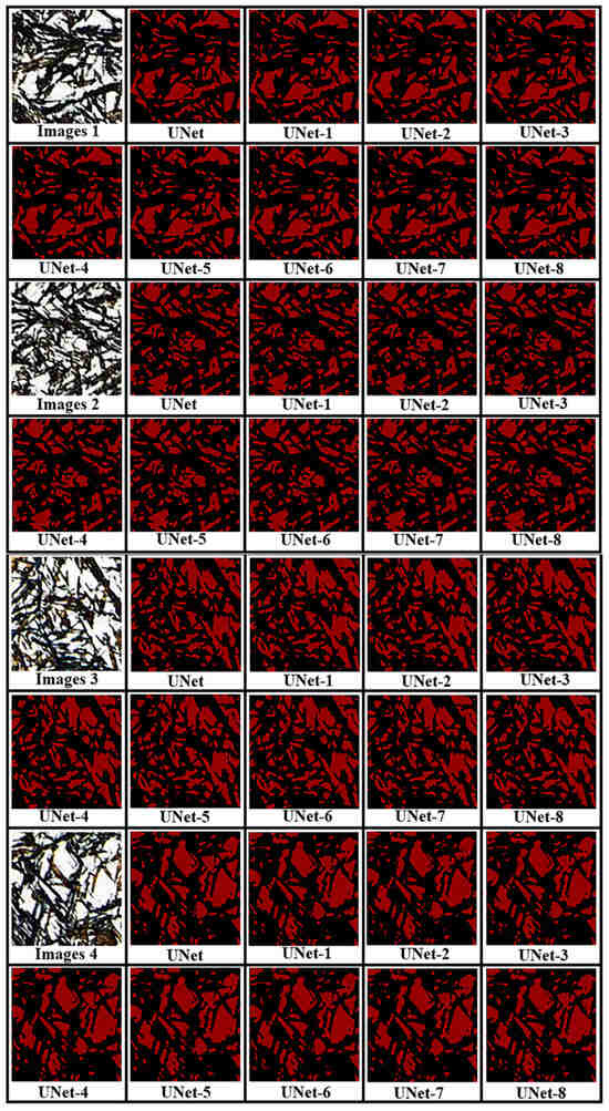 - After optimizing the U-Net model, it is found that the U-Net-6 model, after replacing the activation function RELU with Mish and adding an attention mechanism and regularization treatment, has more advantages for the metallographic structure segmentation of the carburized layer. The evaluation indexes MIOU, MPA, and MFWIOU of the U-Net-6 model for microstructure segmentation are 0.76, 0.92, and 0.85, respectively.
