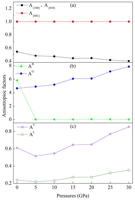 The compressive anisotropy factor () and shear anisotropy factor () are determined through Equation (7) [].