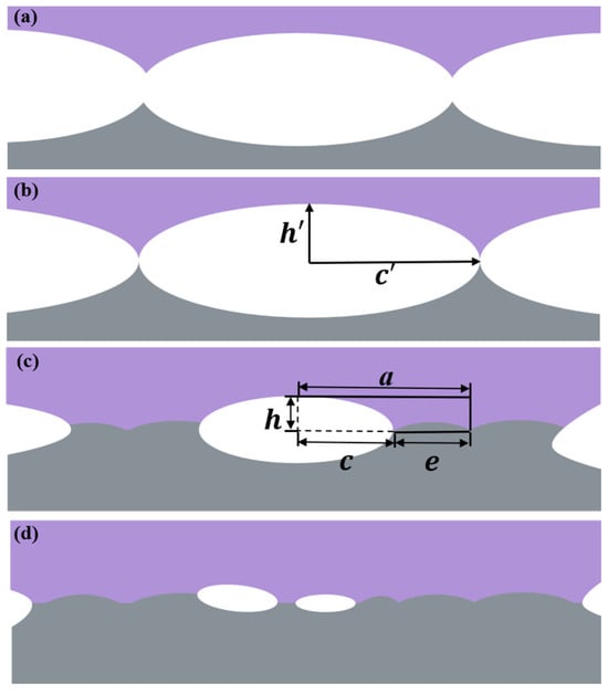 | a | equal to the sum of e and c | h’ | half-height of the elliptical pore |