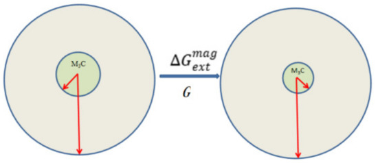 (b) Thermodynamically, the application of a pulsed magnetic field reduces the solvation energy barrier for undissolved carbides and alters the transition temperature.
