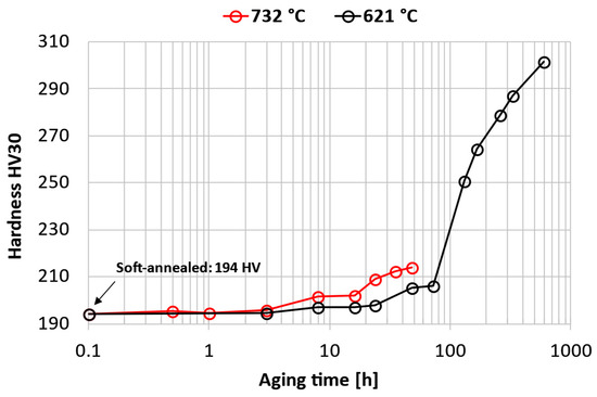 - Suave, L.M.; Cormier, J.; Villechaise, P.; Soula, A.; Hervier, Z.; Bertheau, D.; Laigo, J. Microstructural Evolutions During Thermal Aging of Alloy 625: Impact of Temperature and Forming Process. Metall. Mater. Trans. A 2014, 45, 2963–2982. [Google Scholar] [CrossRef]
