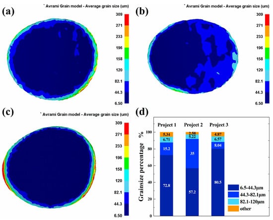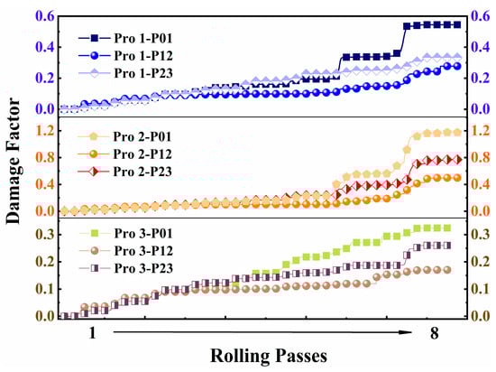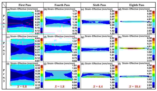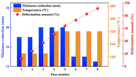 - Asynchronous rolling method: The MFV and effective strain increase during asynchronous rolling because of deeper deformation, resulting in grain refinement and a grain size range of 6.5 to 44.3 μm in clock–snake rolling (Pro. 3), accounting for ~80.5% of all grains.
