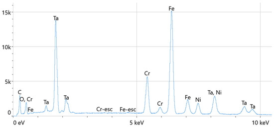 Furthermore, EDX examination revealed the existence of Mo (Figure 3 and Figure 4), Ta (Figure 5 and Figure 6), and ZnO NPs (Figure 7 and Figure 8) on the surfaces of the coated SS samples.