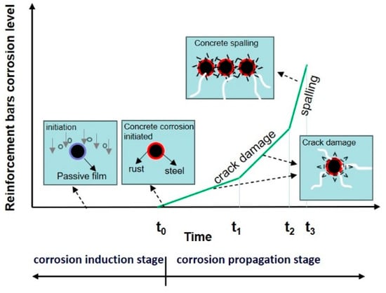 2.2. Corrosion Process of Steel Rebars in Concrete