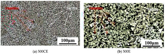 Table 3 indicates that in their original states, 500CE exhibits superior corrosion resistance to 500E, which is primarily reflected in its more positive open circuit potential and comparable corrosion current density, with similar trends observed in both the anodic and cathodic regions of the plots.