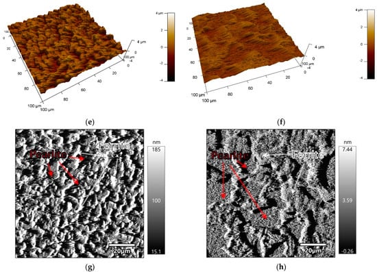 The microstructural analysis is conducted using an electron metallographic microscope (LEICA Co., Wetzlar, Germany) to photograph the microstructures of two types of steel reinforcements. Prior to imaging, the steel reinforcements undergo a rigorous preprocessing procedure. First, an electrical discharge machine process, which is programmed through a control panel to cut metallographic samples with a thickness of 10 mm, is undertaken for both types of reinforcements. The electrical discharge process does not generate excess heat, thus preserving the original structure of the reinforcements. After cutting (WENJIE Co., Suzhou, China), the samples are meticulously dry-ground using sandpaper ranging from 180 to 800 grit, followed by successive wet grinding with sandpapers ranging from 1000 to 5000 grit to eliminate any visible surface scratches. Following pre-grinding, a metallographic polishing machine is utilized for further refinement. Prior to polishing, a layer of alumina polishing compound is sprayed onto a damp polishing cloth for 10–15 s, ensuring complete coverage and uniformity. Polishing is then carried out along the direction perpendicular to the 5000 grit scratches until the experimental surface achieves a flawless mirror finish.
