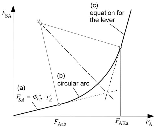 Figure 7 shows the relationship between the additional load in the bolt and the working load for the three loading conditions mentioned above. The states (a) and (c) are connected by an arc in the VDI 2230 guideline. Equations for the analytical calculation of the limit points 1 and 2 and the radius of the arc are derived in the literature [19]. Schmidt and Neuper [35] have simplified the theoretical dependence between the additional bolt load and the working load by three lines, and Petersen [36] by two lines.