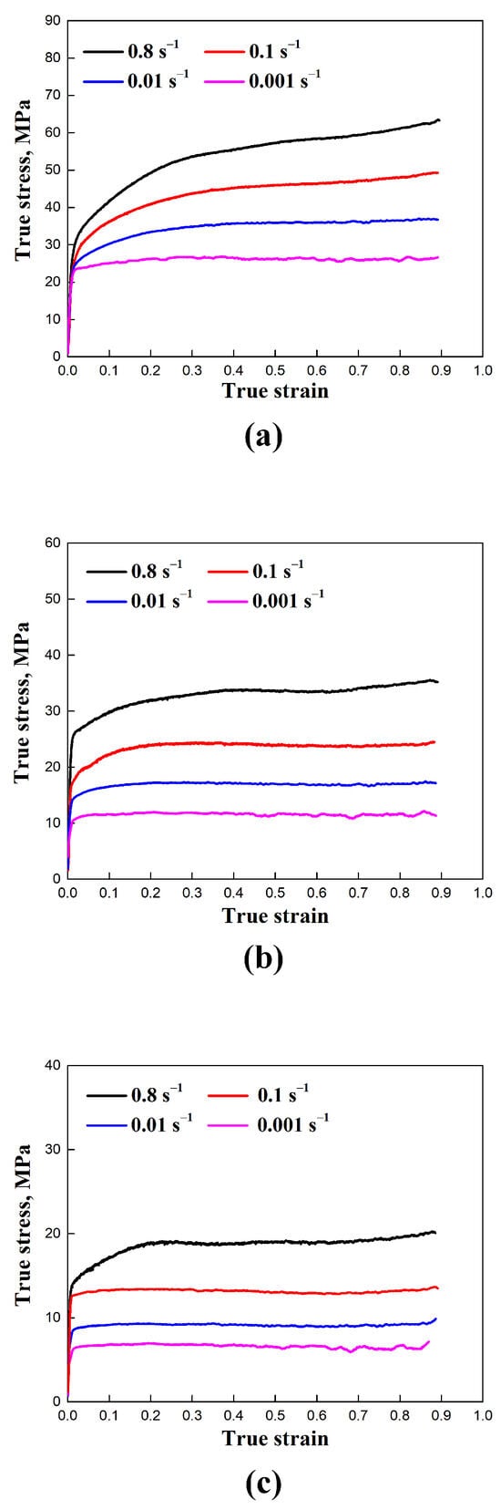 4.1. High-Temperature Deformation Behavior