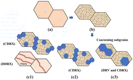 - Chovet, C.; Gourdet, S.; Montheillet, F. Modelling the transition from discontinuous to continuous dynamic recrystallization with decreasing purity in aluminium. Mater. Trans. JIM 2000, 41, 109–112. [Google Scholar] [CrossRef][Green Version]